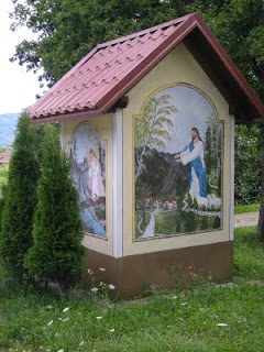 We have now visited two shrines to Mithras; a religion popular with Roman soldiers and banned by the Emperor once he had become a Christian. The one near Crnomelj in the photograph was very atmospheric in a woodland setting, whereas the one at Ptuj had been enclosed in a modern building. However, the outdoor carvings are deteriorating quickly since excavation, with little to protect them.