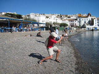 We have found exploring this part of the Costa Brava very pleasant; spending a few hours at the Greek and Roman ruins at Empuries and a day pottering around the narrow streets and rocky bays of Cadaques. The beach at Cadaques is a stone skimmers paradise and Anthony rose to the challenge, achieving eight bounces. When Carol picked up a stone, everyone on the beach wisely took cover - they must have seen Stephen's video from Aysgarth Falls!