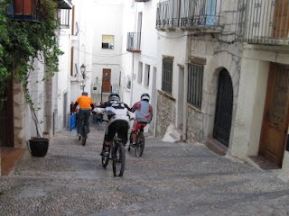 Young men in padded clothing and helmets gathered in Peniscola on Sunday morning to take part in 'Urban Down', a race down the steep narrow cobbled streets and steps of the old town, a sport only marginally less dangerous than bull running.