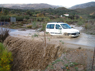 On Christmas Eve we needed to buy some supplies and set off in the van. We got less than 1 km along the road into Orgiva and had to turn back, the normal trickle of a river was flowing fiercely over the road, bringing branches and rocks with it. We returned to the house to review our food options for the next couple of days; we have lentils and onions so won't starve but it will be a more frugal Christmas than some; although at least one thing we won't be short of around here are oranges.