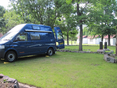 This newly refurbished site had marked pitches on grass and among trees. The facilities looked brand new in 2013 and were good. The site is by a small lake and there are plenty of walking trails from the site. There is a shop with bread and other essentials and a snack bar.