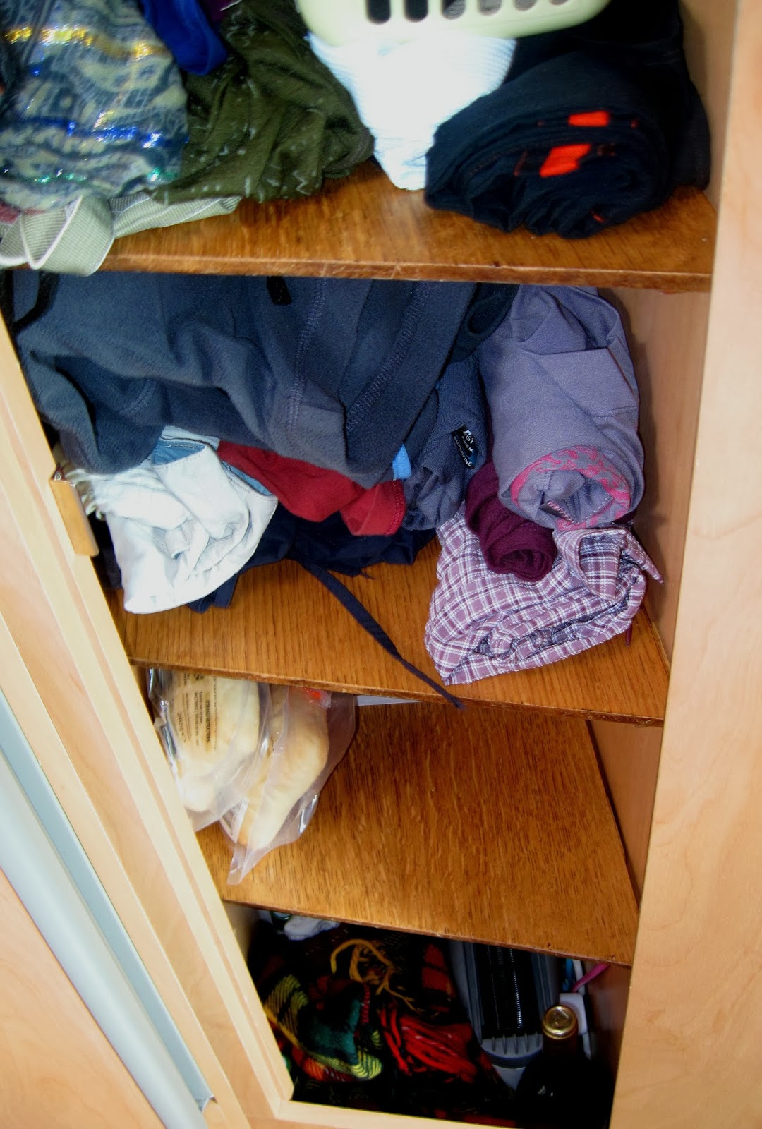 - Added a shelf to the top half of the large cupboard above the fridge where we keep clothes