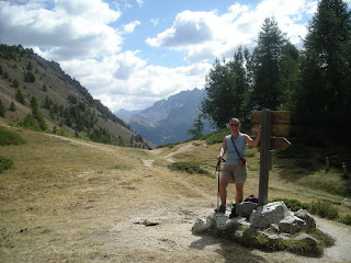 The photograph is at the Col de Bramousse, at 2,250 m a lovely viewpoint; we rested and ate our picnic here, closely watched by two vigilant Marmots, while we watched a Spotted Nutcracker flitting among the pine trees.